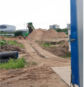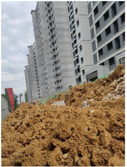 上榜理由:施工现场主要道路未硬化处理,路面积尘严重,现场裸露土方未按要求覆盖到位。
