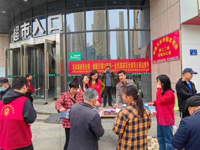 为切实推动国家安全法制宣传教育走深走实,增强结对共建社区居民国家安全意识和法治意识,2024年4月15日上午,市房屋安全鉴定中心党支部联合蓝溪社区党支部、水韵东方小区党支部、翰林雅苑小区党支部来到金安区三十铺镇蓝溪社区开展了“总体国家安全观,创新引领10周年——全民国家安全教育日普法宣传”主题活动。