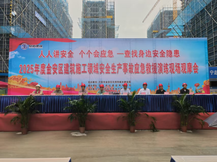 为深入贯彻习近平总书记关于安全生产重要论述和指示批示精神,积极推进2025年“安全生产月”活动主题“人人讲安全、个个会应急——查找身边的安全隐患”,提升施工企业应急响应处置技能水平,促进各企业间经验交流和学习,金安区UED体育 于6月27日在远大·印澜山二期项目现场组织举办“2025年金安区建筑领域安全生产事故应急救援演练观摩活动”,区内在建项目各建设单位项目负责人、监理单位总监及安全监理、施工单位项目经理及安全员共计 90余人参加。